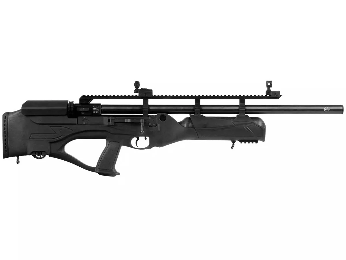 The Bully brings the same attitude and performance to the table as its older brother, the Hercules. The most notable change over its sibling is the synthetic bullpup style stock, which reduces weight but still packs just about the same punch, but in a much more manageable size. The adjustability allows for customization to fit any shooters needs. Available in just about every caliber out there, the bully just might be the most versatile option Hatsan has ever offered. The energy varies between 50 to 290 FPE, depending on caliber and each barrel is riffled and choked to ensure a true fit for pellets. Each rifle includes Truglo flip up sights and a weaver mount for any type of optic you have in your arsenal!