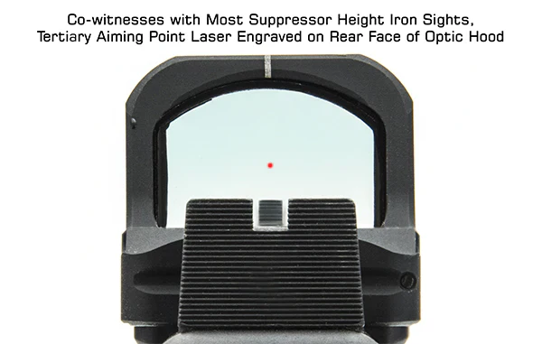 - Tertiary Aiming Point Laser Engraved on Rear Face of Optic Hood